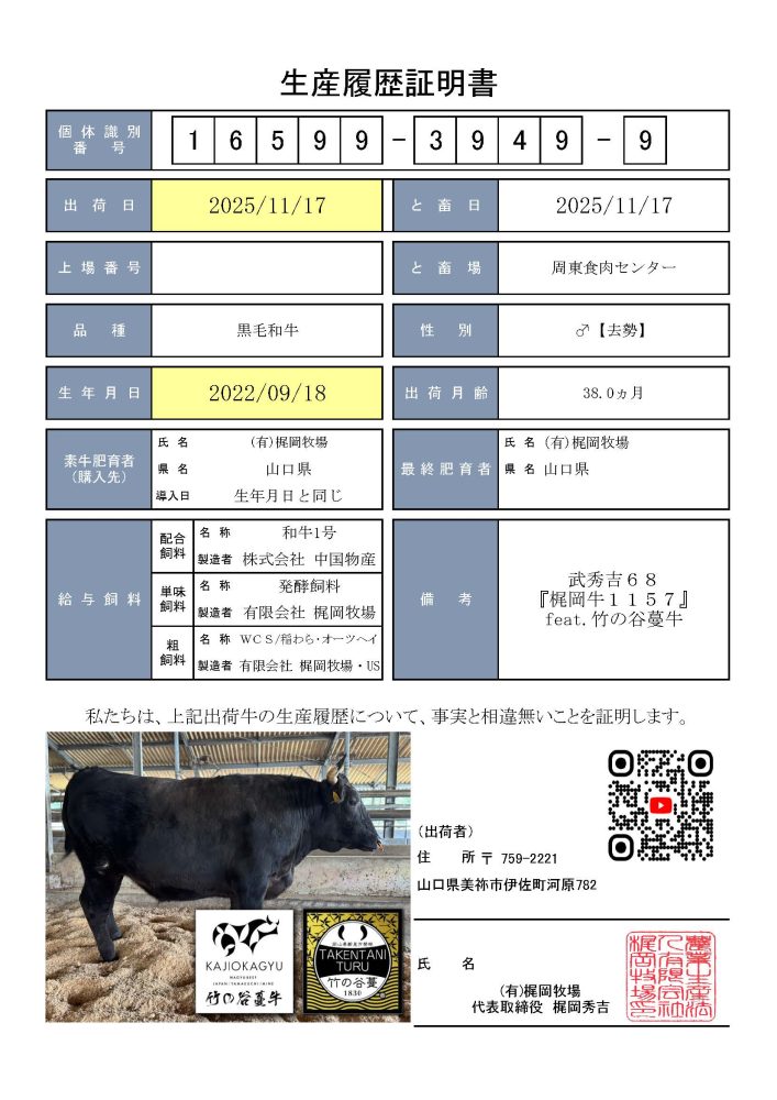 2025-11-17梶岡牛(竹の谷)[16599.3949.9]生産履歴証明書